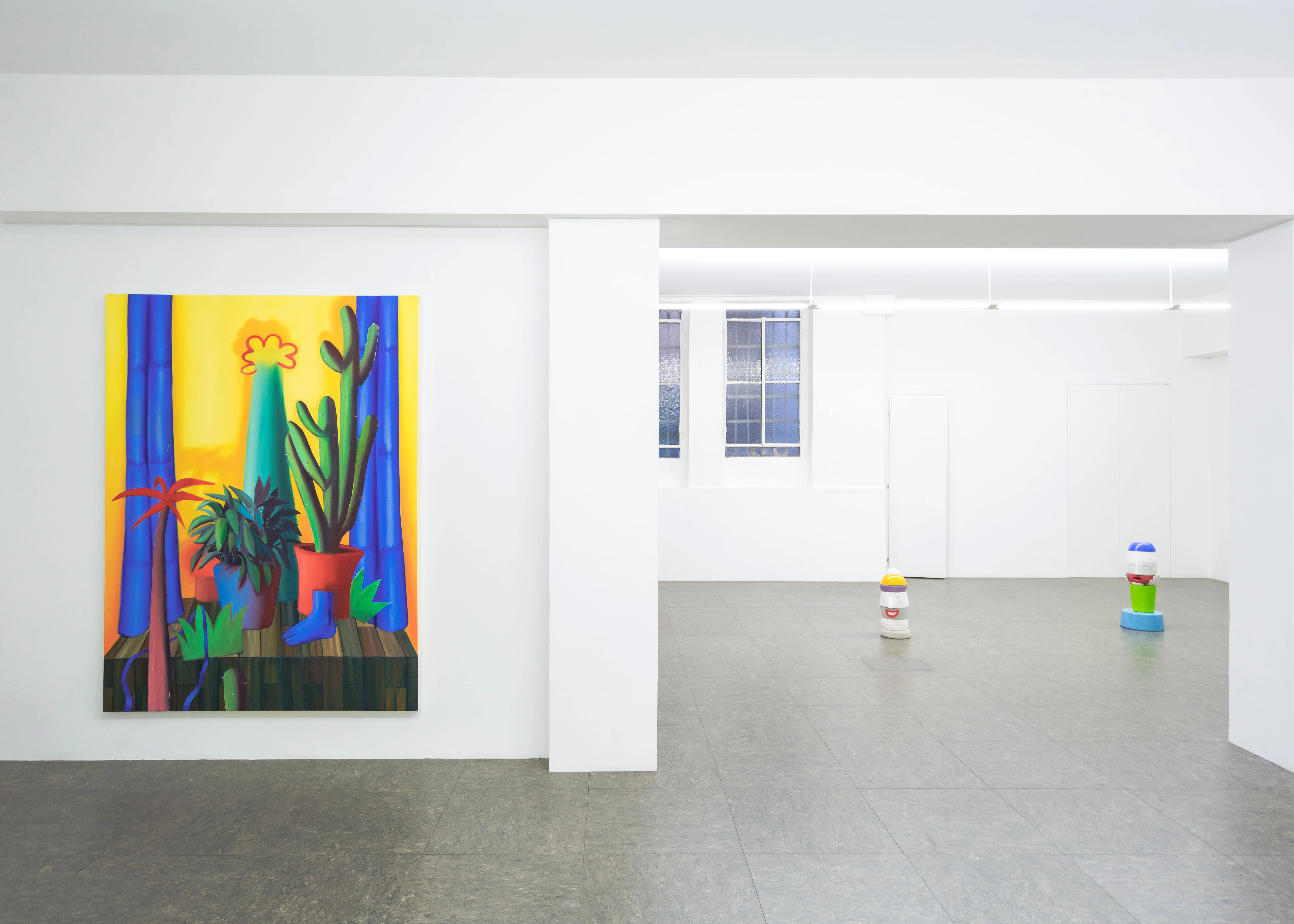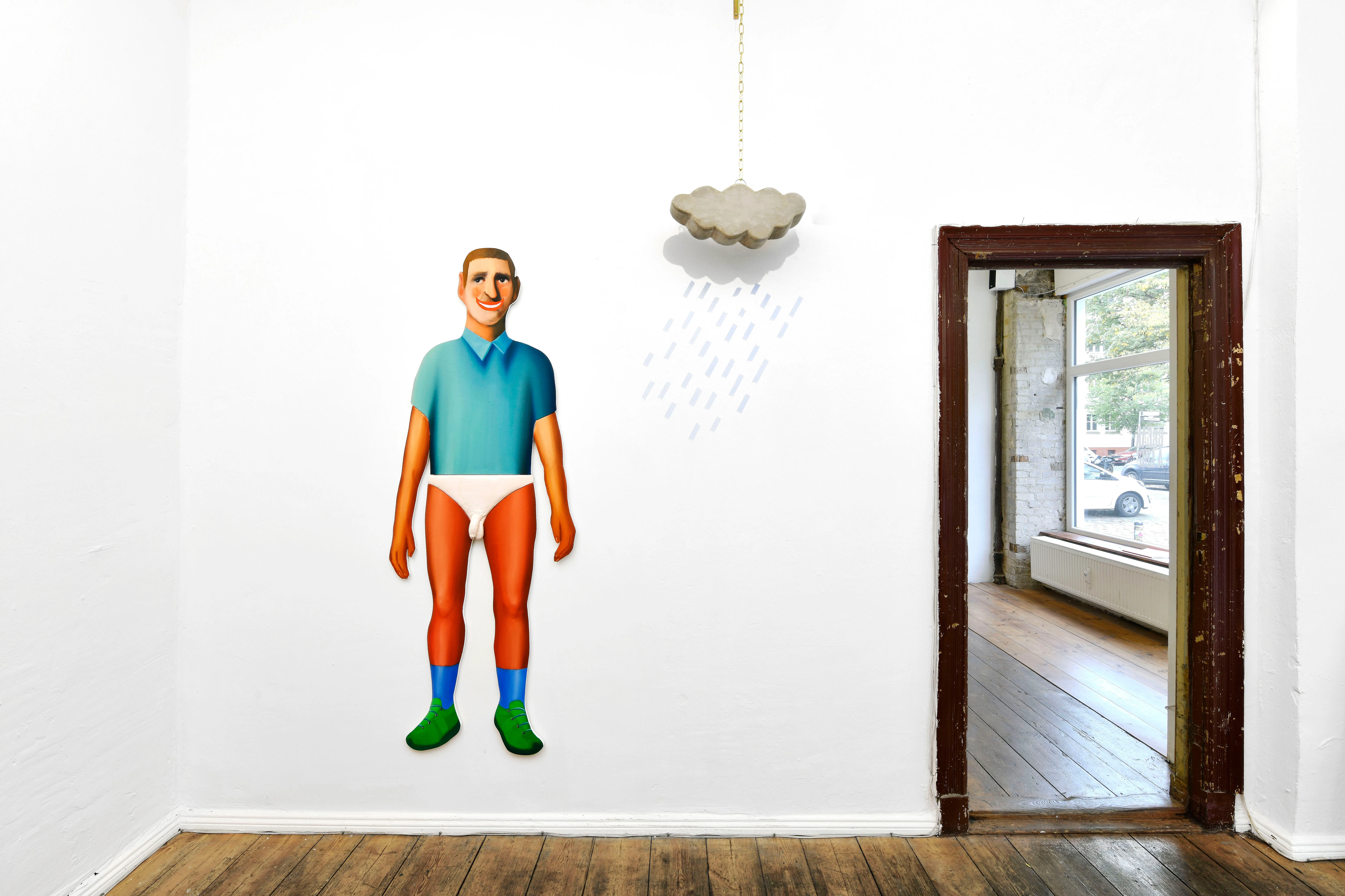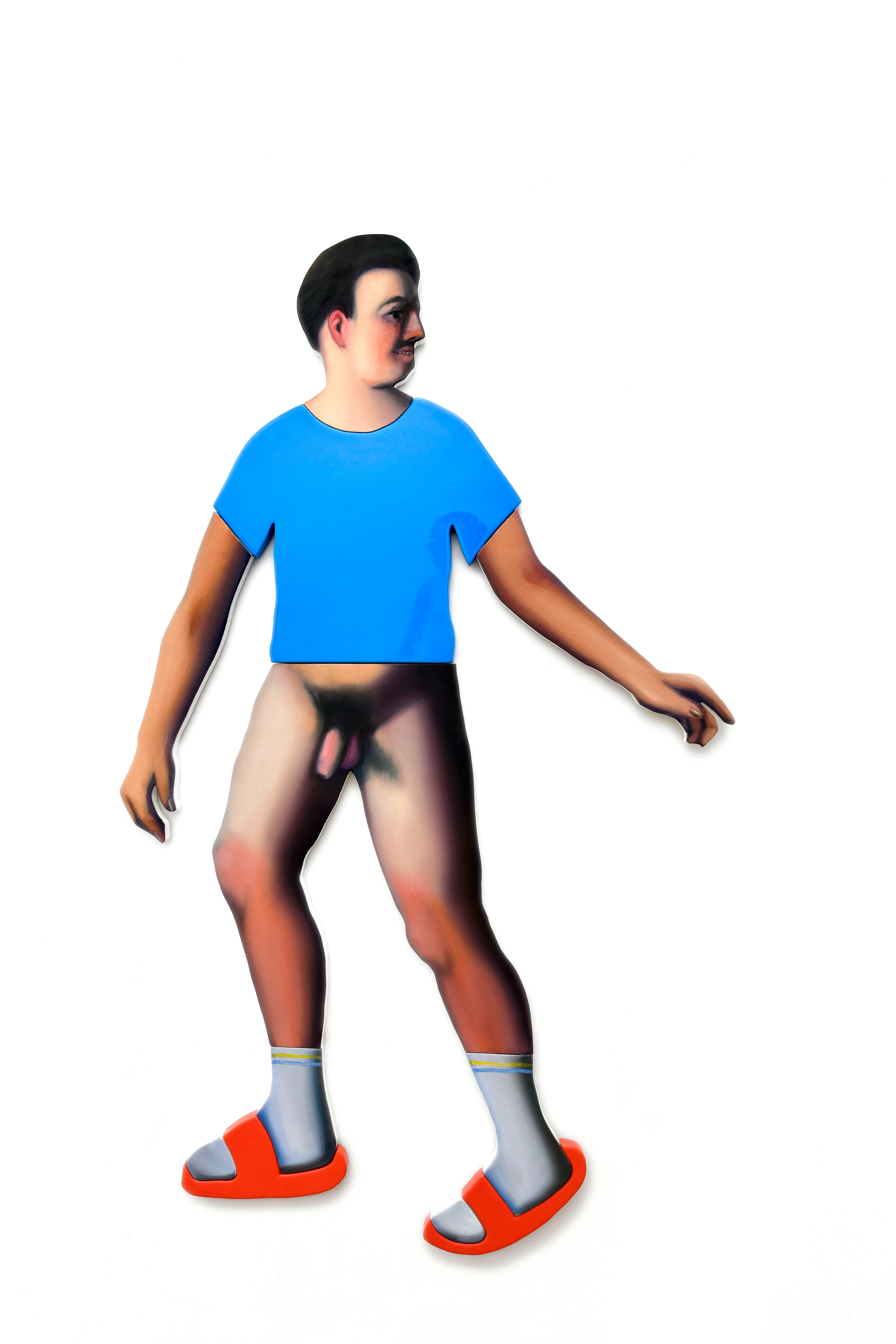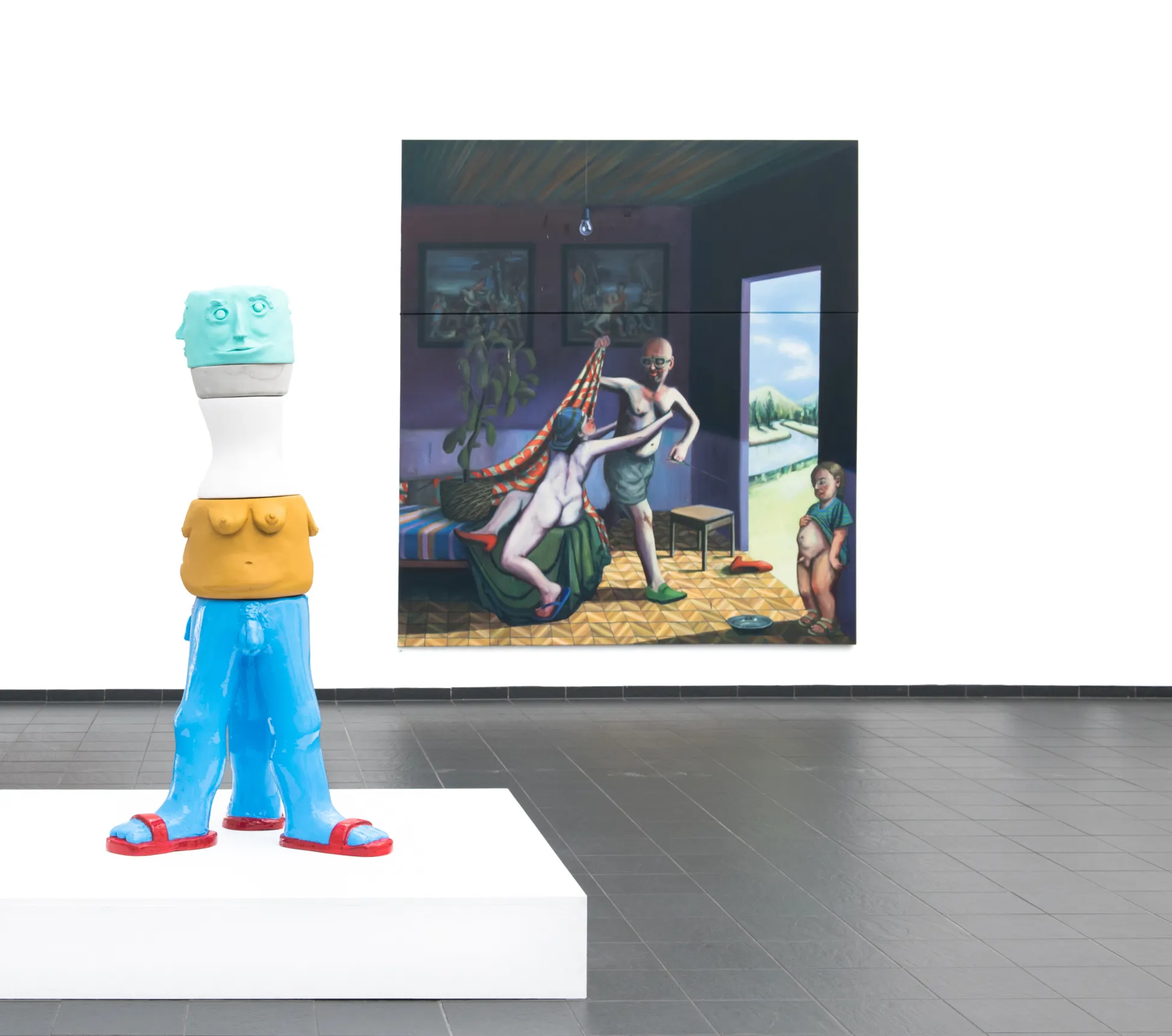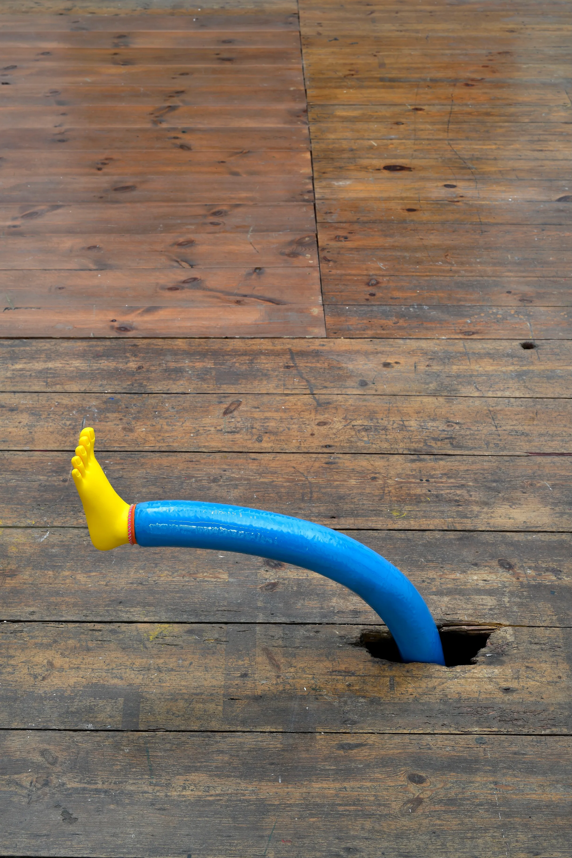 Cement, resin, plaster, metallic chain, oil on cut canvas, hair
